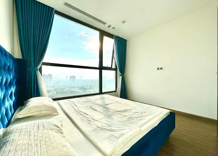 Located around 10 minutes' drive from My Dinh Stadium, the 60 m² Deluxe Two Spacious Bedroom Apt, Nice View With Big Window In Vinhomes Green Bay Hanoi is 4.4 km from a top family-friendly place like the Thống Nhất Park. This 1-bedroom apartment ensures a comfortable stay with facilities such as currency exchange and a lift, Wi-Fi, and private parking for those travelling by car.
